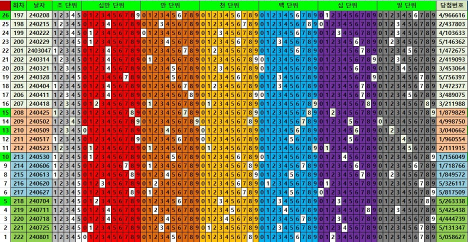 #연금복권197~222회 26주 당첨분석